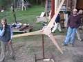 Workshop at Guemes Island, WA, April 2004, hosted by Ian Woofenden of Solar Energy International (SEI) and taught by the guru of homemade small-scale wind turbines, Hugh Piggott. Helping out were Brian Faley, Andy Gladish, BJ Daniels, Michael McGuinness, Dan Bartmann and Dan Fink (the Dans of Otherpower.com). From blueEnergy, Mathias Craig, Lâl Marandin, and Darin Bird in attendance. |