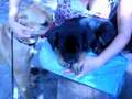 Description: Annabella checks out Ashlees new pupp, Amos. |