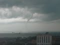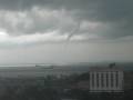 Description: A Water Spout comes out of the sky and mobs a boat in the water. Shot from hotel balconly looking onto the Malacca Straits, in Batam Indonesia. |